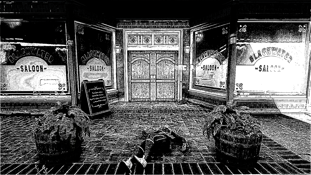 At 9:46 PM, I stood on the scene at the corner of Main St. and Van Horn St., just as the evening’s dance between madness and chaos reached its peak. The shouts and yells from officers on every end of the street but unseen through the dense fog; numerous law mounts without their riders running wild into the night; bodies of the dead and injured scattered up and down Main St. like piles of horse crap – all this overshadowed by the familiar sound of an arrow hitting its target to my right. My attention turned as I saw an officer’s now lifeless body fall from the wooden stairs leading up behind the General Store to the sidewalk.
