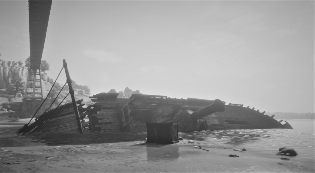 A transport ship carrying hundreds of valuables from Blackwater to the Northeastern United States through the Lannahechee River was shipwrecked when a storm broke out on Flat Iron Lake. The ship was forced north into shallow waters at the mouth of the Dakota River where it bottomed out and wrecked. The damage was severe and the valuables were spread over the shore.
